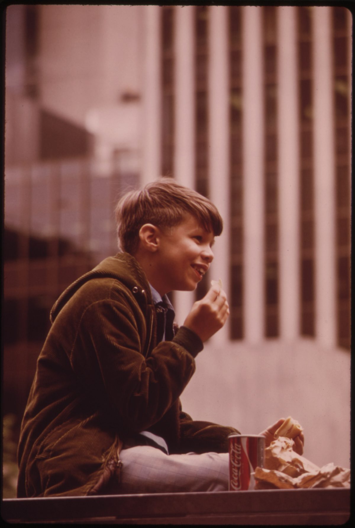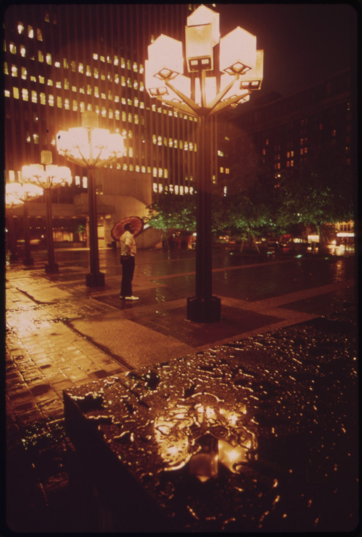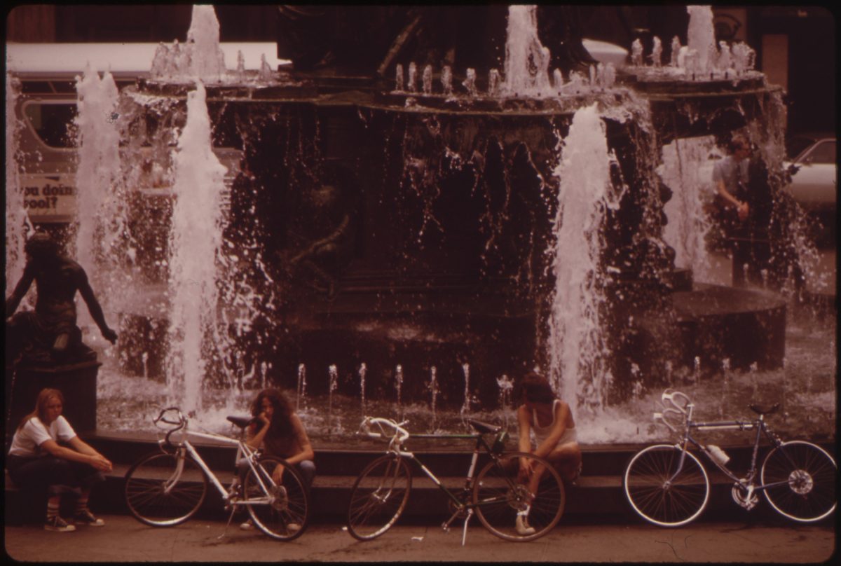 In the spring and summer of 1973, American photojournalist Tom Hubbard (1931–2022) was on assignment for the DOCUMERICA project in downtown Cincinnati, Ohio. He focused on life around Fountain Square. Founded in 1871, the square was renovated for its centennial in 1971.