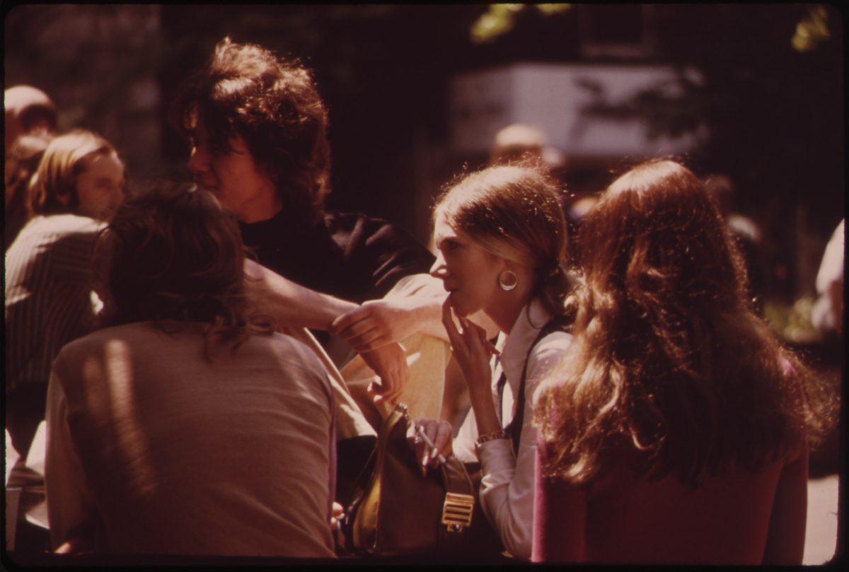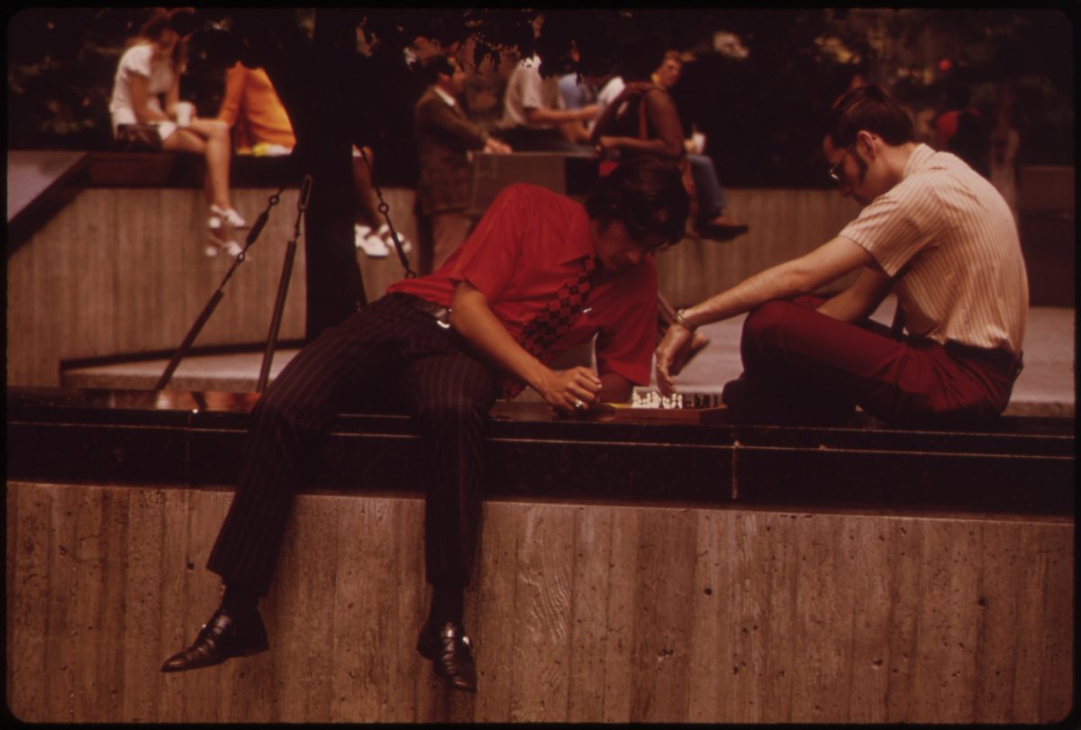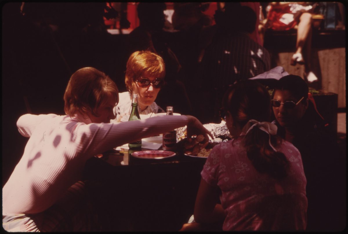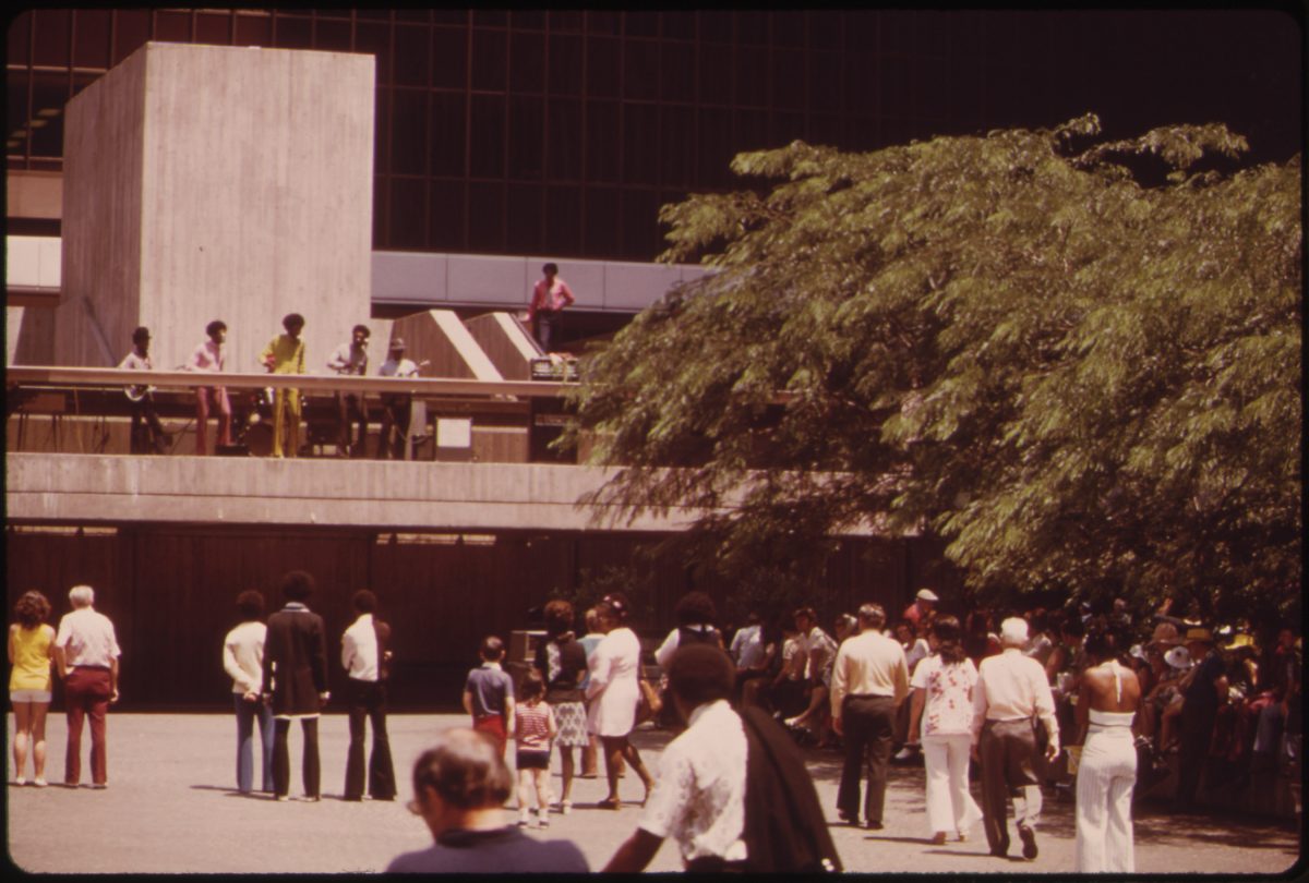 In the spring and summer of 1973, American photojournalist Tom Hubbard (1931–2022) was on assignment for the DOCUMERICA project in downtown Cincinnati, Ohio. He focused on life around Fountain Square. Founded in 1871, the square was renovated for its centennial in 1971.