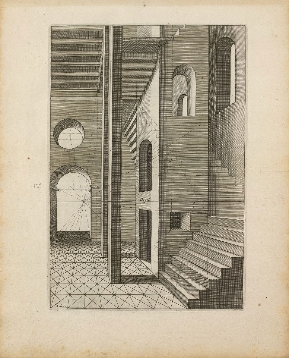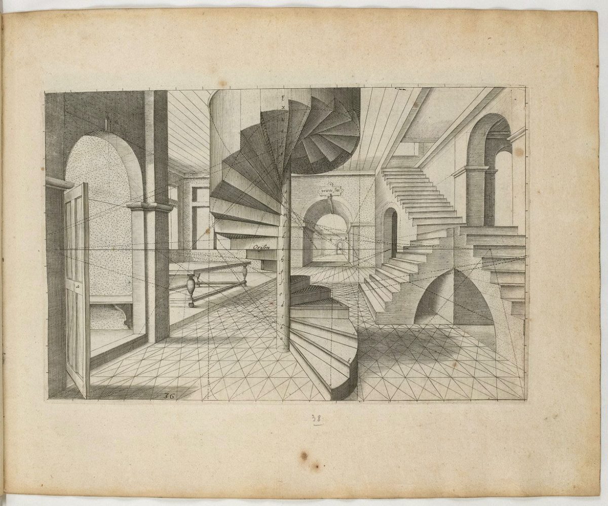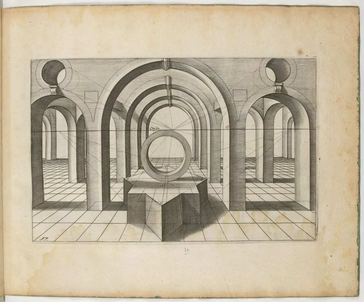 In 1604, Dutch Renaissance architect, painter and engineer Hans Vredeman de Vries (1527 – c. 1607) published Perspective. In it he explored the relationship between linear perspective in an architectural space. He invites the reader to wonder how the structure of reality can be interpreted. Can a flat canvas or page show space, time and the infinite? How can we free ourselves from a perspective imposed by the popular technology of the day?